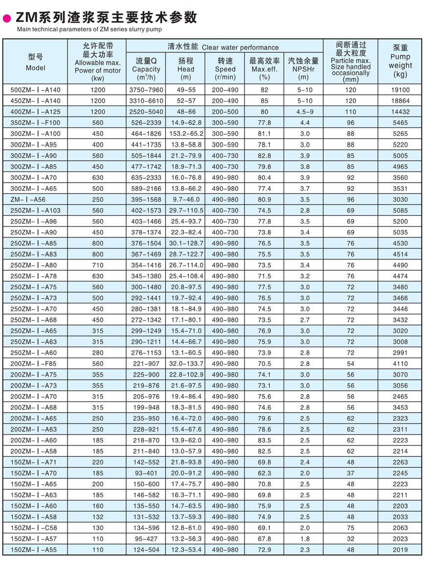 ZM型渣浆爱体育在线登录官网系高*效节能、单级、单吸离心式渣浆爱体育在线登录官网。按结构型式分为:卧式( ZM型)和立式( ZML型)两种,卧式爱体育在线登录官网按出口直径为500mm、 450mm、 400mm、350mm、300mm、250mm、200mm、1 50mm、100mm、80mm、65mm、50mm、40mm等多种规格。立式爱体育在线登录官网按出口直径分为150mm、100mm、 80mm、 65mm、 50mm、40mm等多种规格。